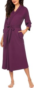 I bought this robe last week as a little just because present to myself. Normally, I find robes to be a little too heavy. This is definitely not a problem with this robe. It’s super light, and the cotton is crazy soft. It feels so luxurious but without a hefty price tag. It has a tie closure to keep the robe securely in place while you’re doing things around the house.