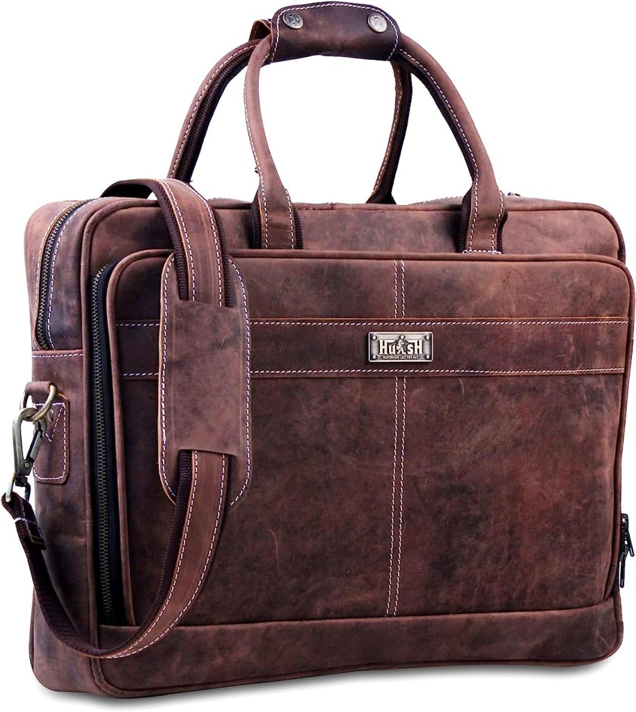 The HULSH 18 Inch Leather Laptop Bag strikes a perfect balance between elegance and functionality. Crafted from genuine leather, this bag exudes a vintage, classy vibe that is perfect for professionals who prefer a traditional aesthetic. The padded sleeve, functional front pocket, and top-quality metal fittings and zippers provide the much-needed functionality alongside style.