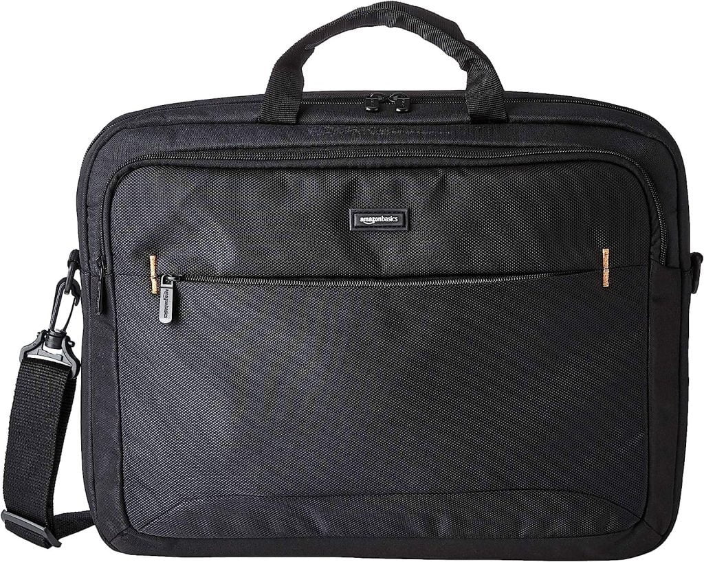 Amazon Basics Laptop Bag is a powerhouse when it comes to storage. It has multiple size options up to 17.3″ and offers a high-volume front compartment and accessory storage pockets for a variety of items. The inclusion of a luggage pass-through on the back panel makes it the perfect companion for traveling professionals. Quick-access items can easily be stored in the convenient front pocket, ensuring essentials are always within arm’s reach.
