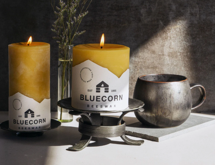 13. Bluecorn Large Raw Beeswax Pillar & Hand-Forged Holder Gift Set