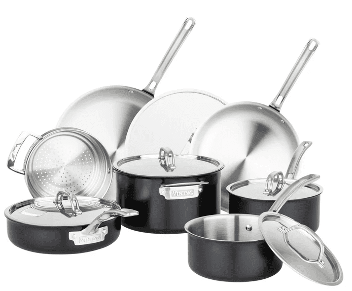 1. Viking 12pc 3-Ply Cast Black Exterior Stainless Steel Cookware Set