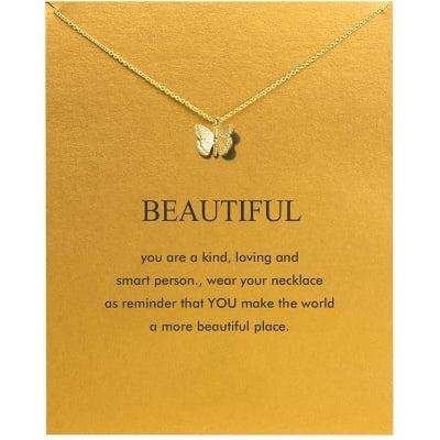 It is a reminder that you make the world a more beautiful place by wearing this necklace. To show your girlfriend, colleagues, and more that you value them, the necklace comes with a quality greeting card, as it gives hope that everyone gets the best wishes and the sincere words often pull at our heartstrings. This fashionable necklace has a chain length of 16.5 inches and a width of 1.9 inches that is suitable for a variety of occasions. The necklace includes a love heart envelope, a butterfly necklace, a sweet little accessory gift to give to someone special or a friend.