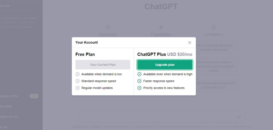 ChatGPT was initially a free AI tool for all without any downtime issues. Due to a massive influx of users, the company decided to launch a paid version or ChatGPT Plus for those who need more features and priority access.