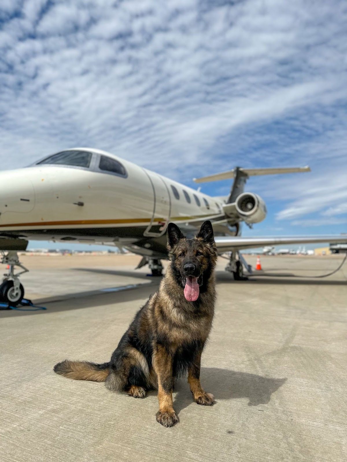 This training allows the dog to remain completely relaxed in chaotic environments – crowded streets, private jets, business meetings – yet instantly switch to protection mode on command.