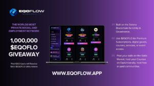 EqoFlow Technologies LLC today announced the official launch of its decentralized social platform, EqoFlow, with a 1,000,000 $EQOFLO token giveaway. The first 1,000 verified users who register and post their skills or content on the platform will each receive 1,000 $EQOFLO utility tokens, kickstarting their participation in EqoFlow’s new digital creator economy.