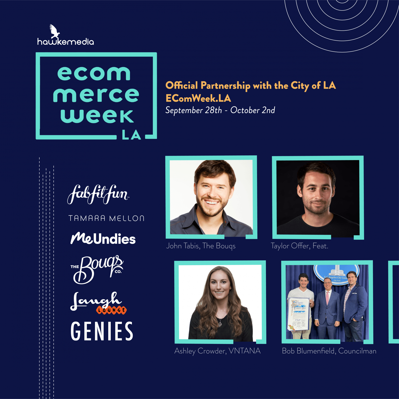 “We have worked since the beginning of Hawke Media to bring together the thriving eCommerce community in Los Angeles, and we are incredibly excited to be partnered with the Mayor and City Council to truly launch our capstone in eCommerce Week LA,” said Hawke Media Founder and CEO Erik Huberman.