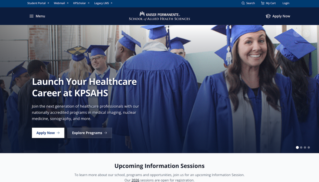 | Kaiser Permanente School of Allied Health Sciences | Allied health programs linked to major health systems | Program outcomes hub and public reporting references |