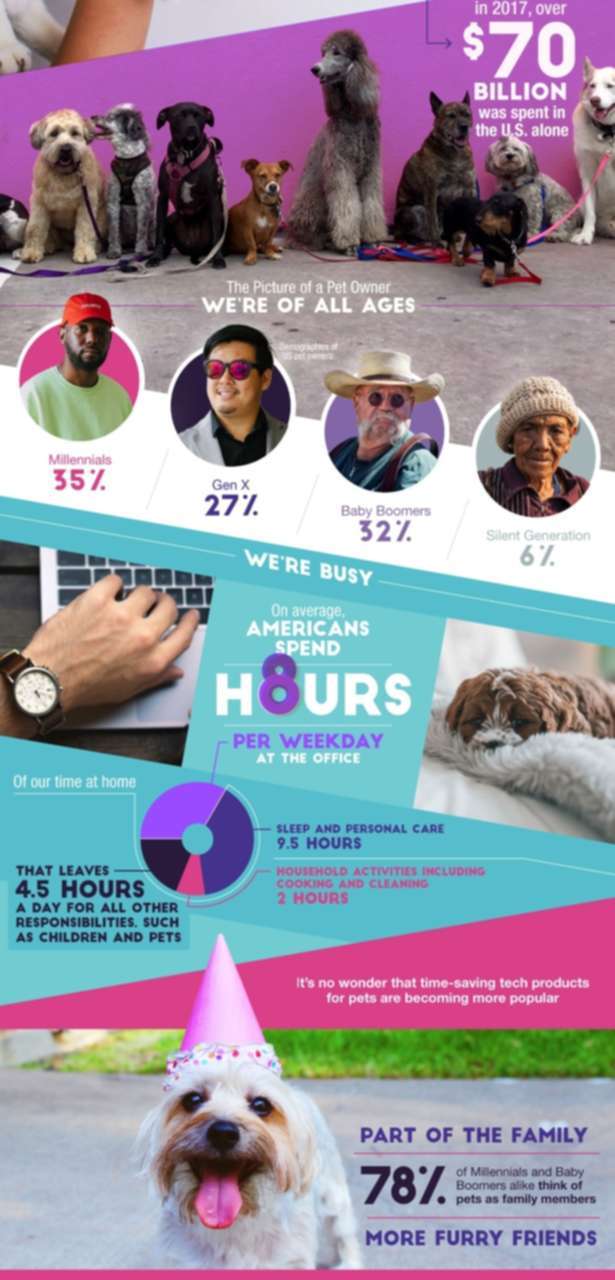 Cats, dogs, lizards, or birds, there’s tech for nearly every animal you keep company with. Take a look at this infographic for more on the current state of pet ownership in the US, how we are managing our busy lives to make time for our pets, and what pet tech is doing to bring us closer.