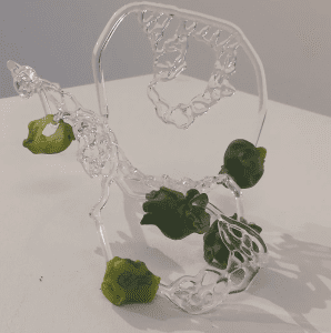 Lucía is currently promoting her latest project, “Quien te Quiere Como Yo,” which was inspired by her relationship with her grandmother. The flameworked piece includes much of the networking technique that she frequently utilizes in her work, but it also features some non-permanent elements such as natural flowers and borax crystals. Crystallization is a technique Lucía used for the first time in this piece.