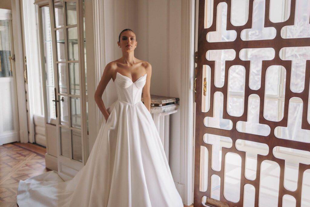 It carries dresses and styles exclusively from European designers, and its gowns reflect the highest standards of European production quality, a fact that has earned it admiration and respect from professionals and brides across the North American wedding industry.