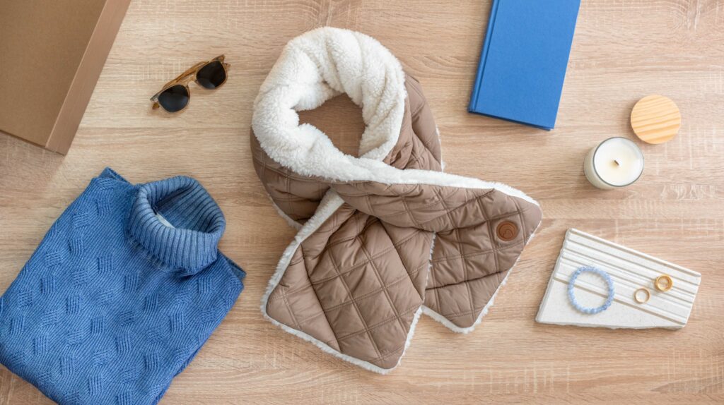 The SherPuff Scarf from Puffer Hug is a cozy upgrade for cold-weather routines. One side features plush faux sherpa that adds warmth on brisk days, while the other uses sleek quilted nylon for a more polished look. The reversible design makes it versatile for workdays, weekend errands, and travel. The pull-through loop keeps it secure around the neck, and the lightweight construction makes it easy to pack for commutes or trips.