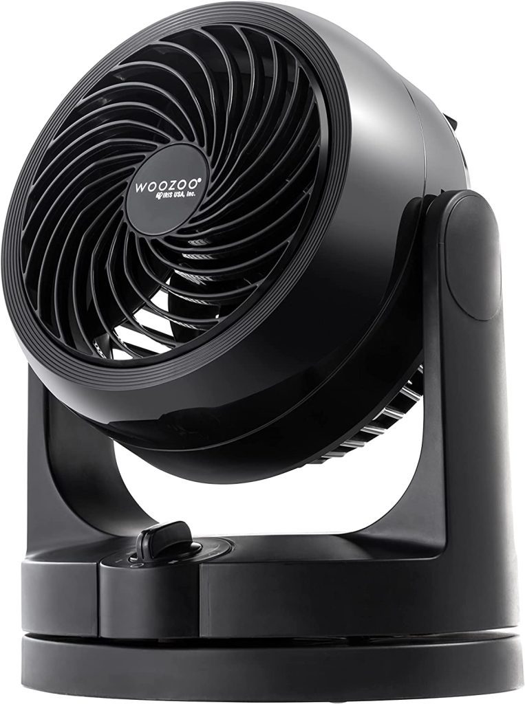The IRIS USA WOOZOO fan has a diameter of 7 inches, but don’t let the small size fool you. This oscillating fan is great for smaller spaces, especially when placed atop a desk. The shape of the blade helps focus the airflow, allowing it to provide concentrated cooling air. You can even change between the three available speed settings as needed.