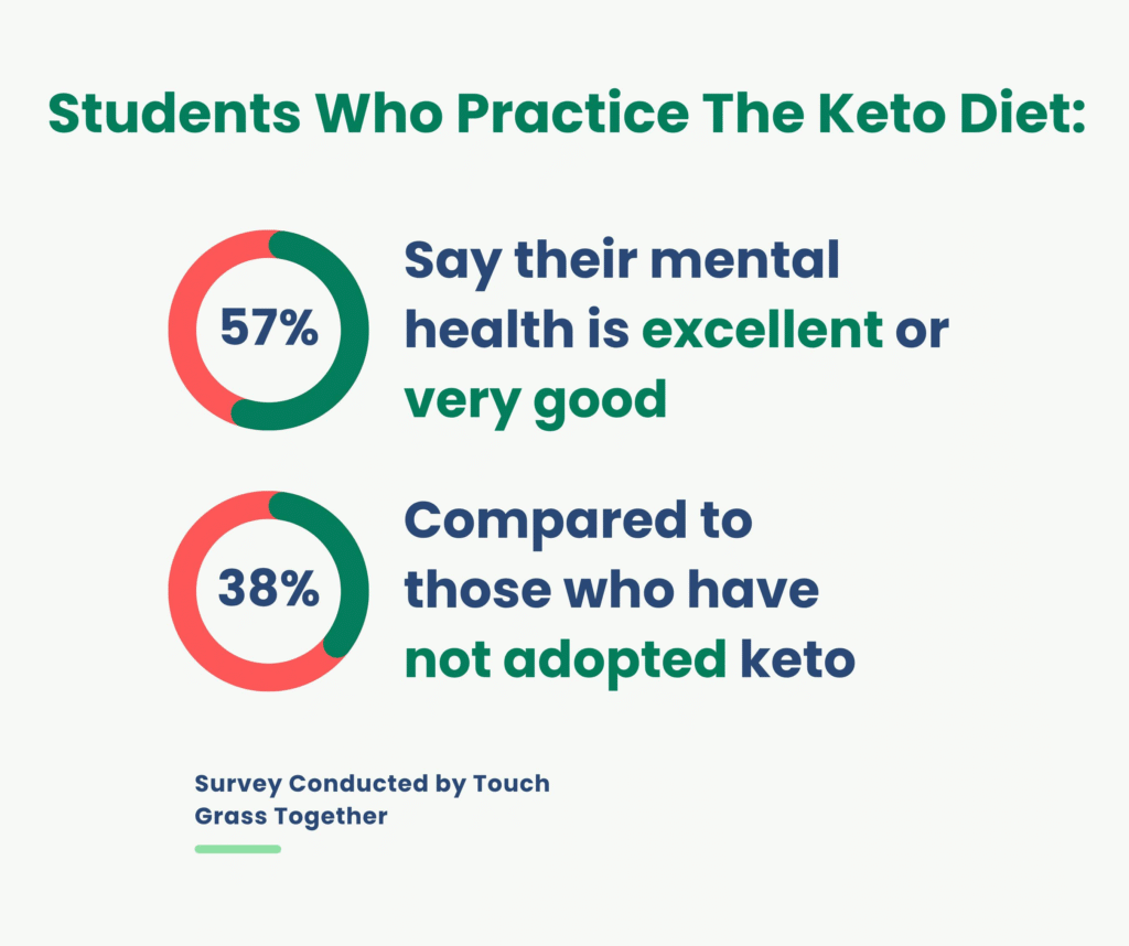 One of the survey’s standout findings: students who have followed a keto or low-carb diet this school year report dramatically better mental health.