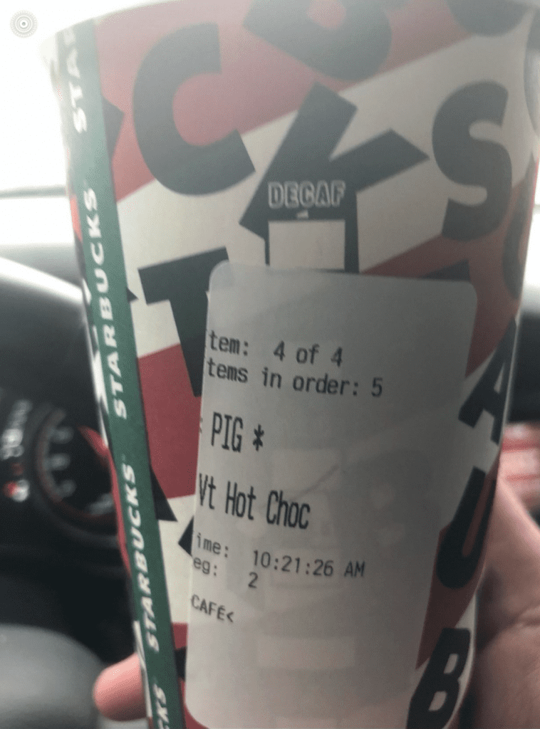 And two weeks ago in Oklahoma, a barista handed an officer a coffee cup with the word “PIG” printed on the cup’s label.